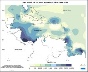 Caribbean Yearly Rainfall for September 2024 to August 2025